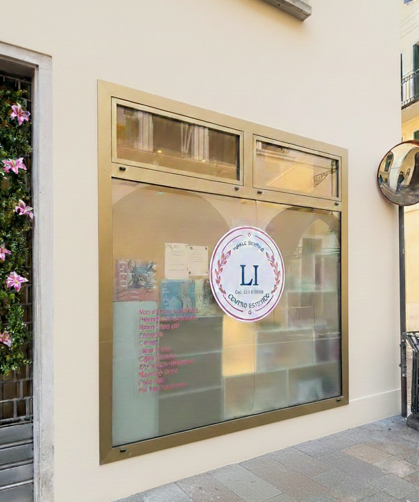 Il mio centro è facilmente riconoscibile dall’insegna “Centro Estetico LI” posta sulla vetrata che vedi nella foto qui accanto.